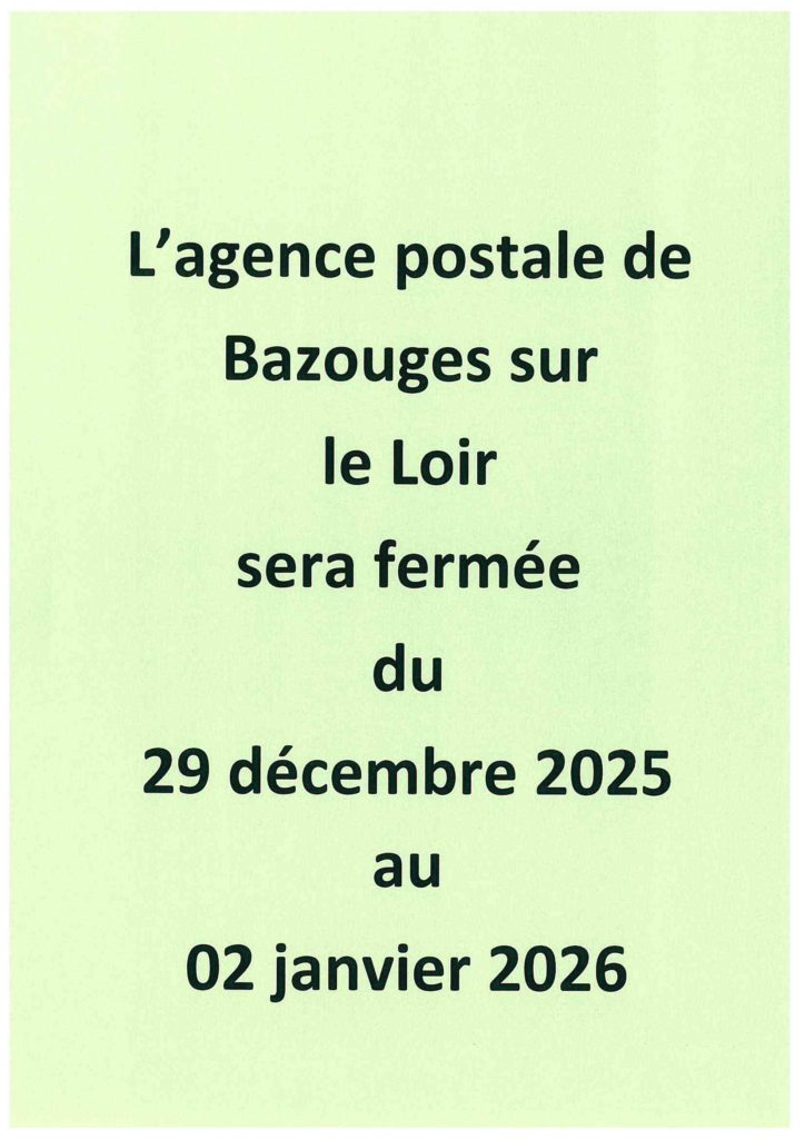 Fermeture exceptionnelle – Agence postale de Bazouges sur le Loir
