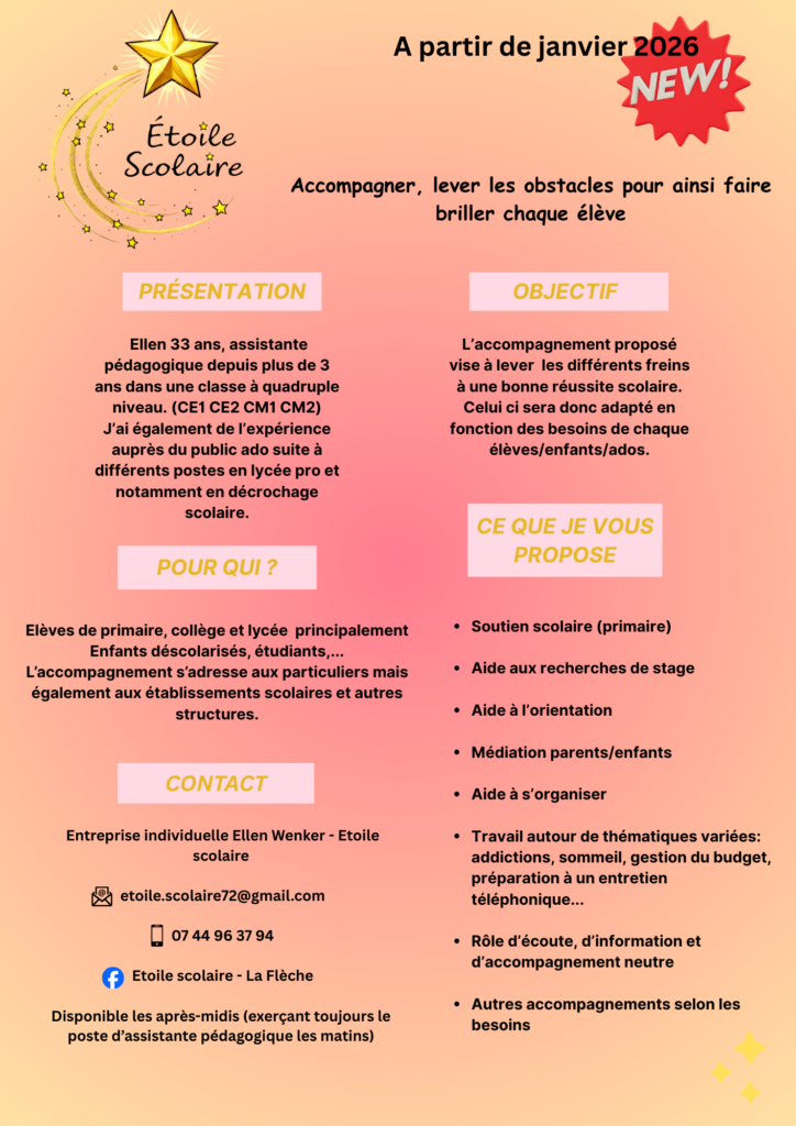 Etoile.scolaire72@gmail.com ou Facebook Etoile Scolaire La Flèche