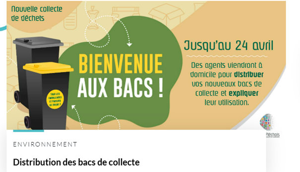 distribution des nouveaux bacs de collecte 2 mars 2026 | Aucun commentaire A partir du jeudi 5 mars 2026, des agents de la société SULO viendront à domicile pour distribuer vos nouveaux bacs de collecte et expliquer leur utilisation. Pour rappel, les bacs sont gratuits! Non classé