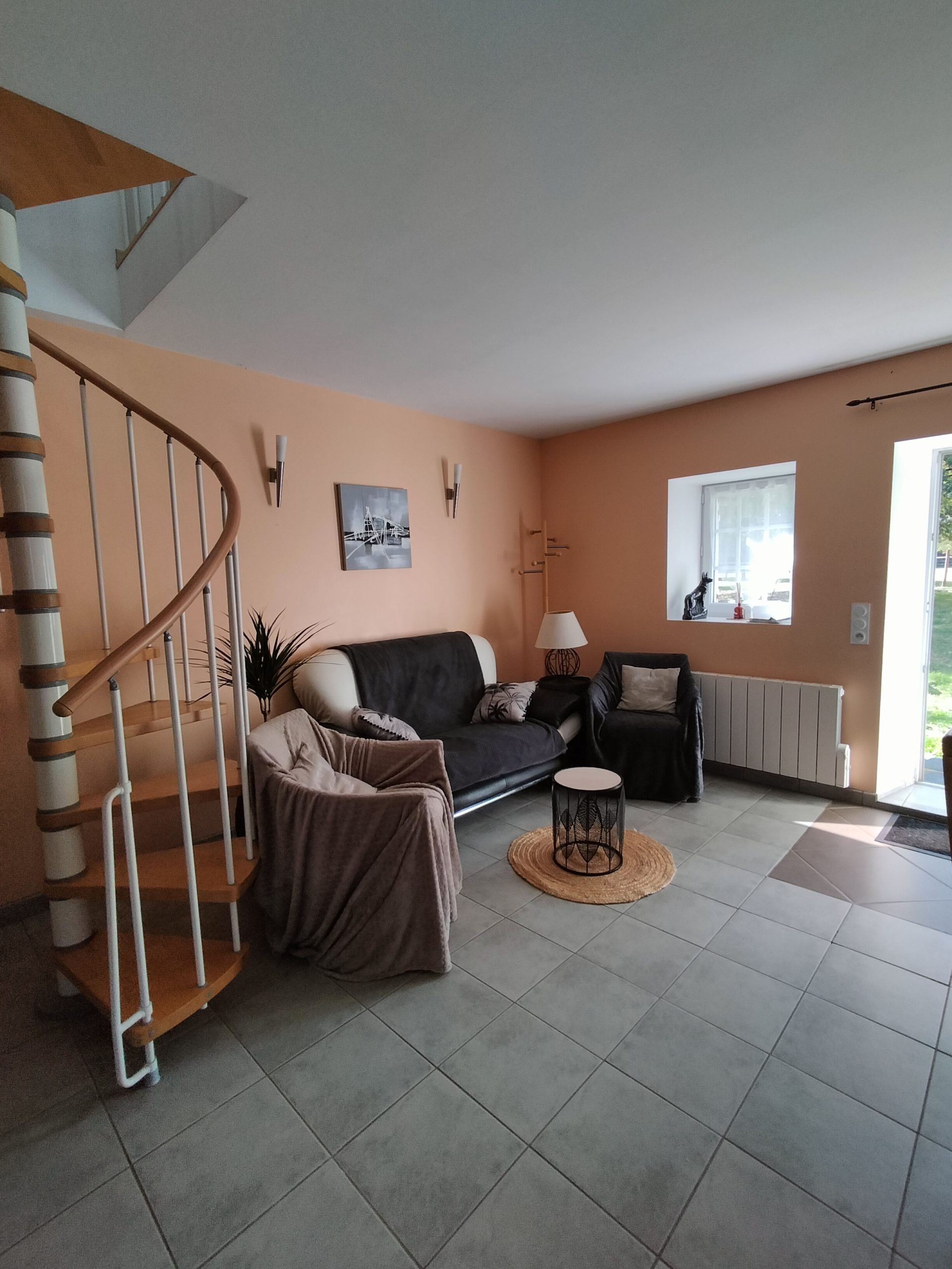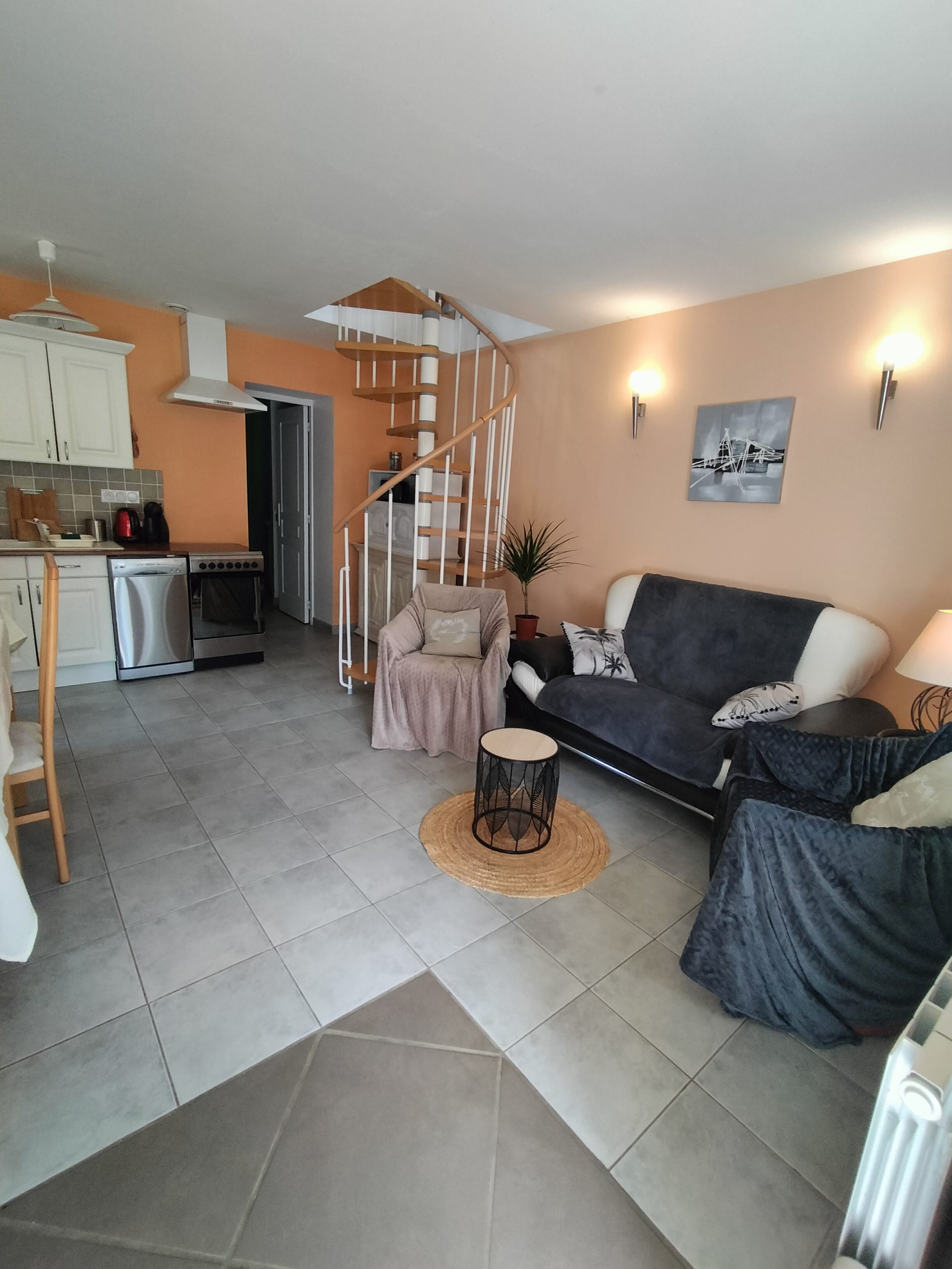 En rez-de-chausseé, la cuisine/samme à manger et le salon.